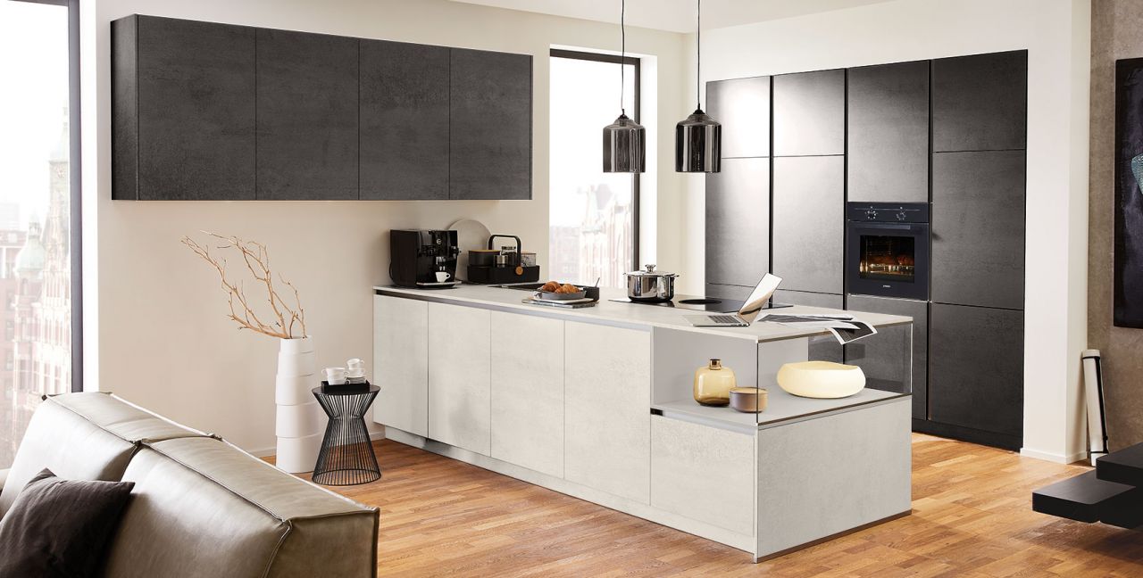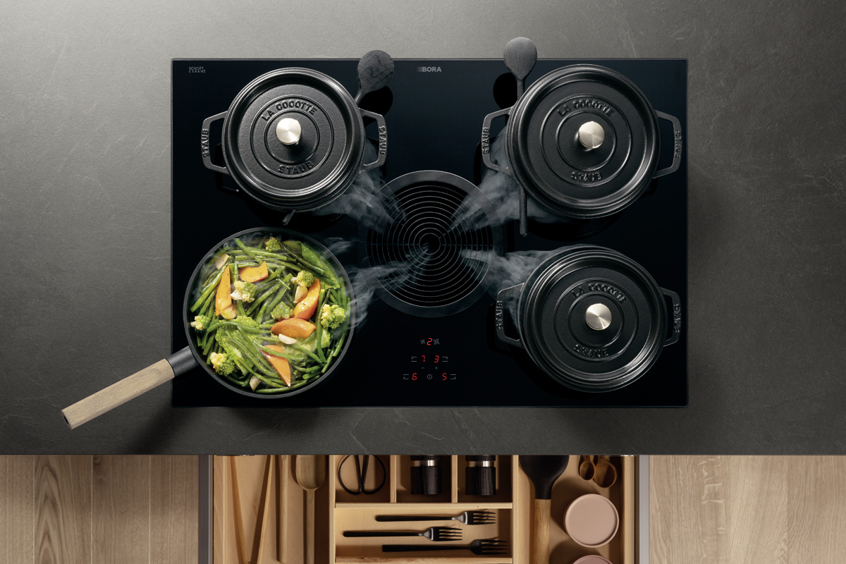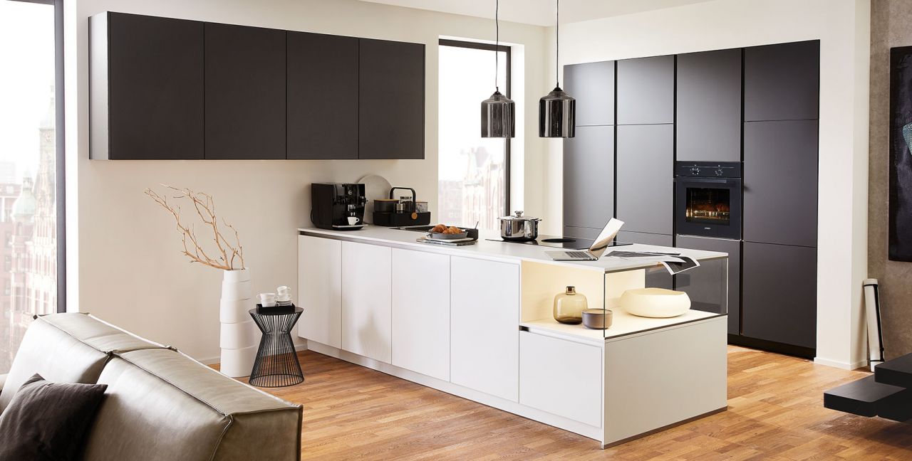 Inclusief inbouwoven zwart Junker JF1300061 Energieklasse A, keramische kookplaat met inductie en werkbladafzuiging (circulatielucht) Bora GP4U, koelkast met ****vriesvak Junker JC20GCSE0 Energieklasse E, RVS-inbouwspoelbak Rodi BOX LUX 46, XL-kasten, onderkast met grote lade, glazen designzijkant.