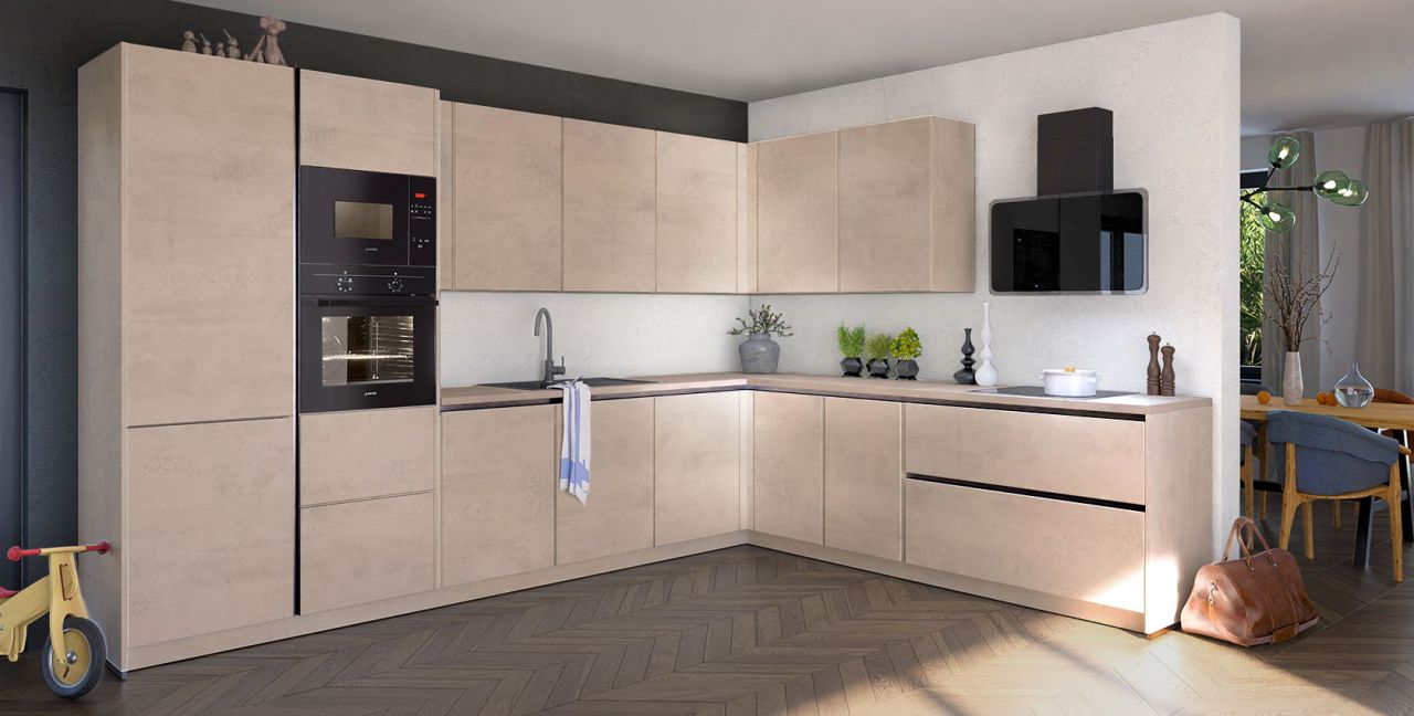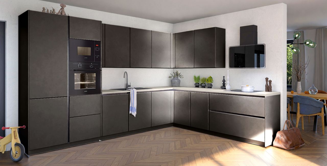 Inclusief inbouwoven zwart Junker JF1300061 Energieklasse A, keramische kookplaat Junker JR36DT54, afzuigunit RVS / glas Faber GLAM-FIT BK80 Energieklasse A, koelkast met ****vriesvak Junker JC20GCSE0 Energieklasse E, magnetron Junker JP4119260, inbouw-designspoelbak Elleci Logik 300, XL-kasten, onderkast met uittrekinterieur.